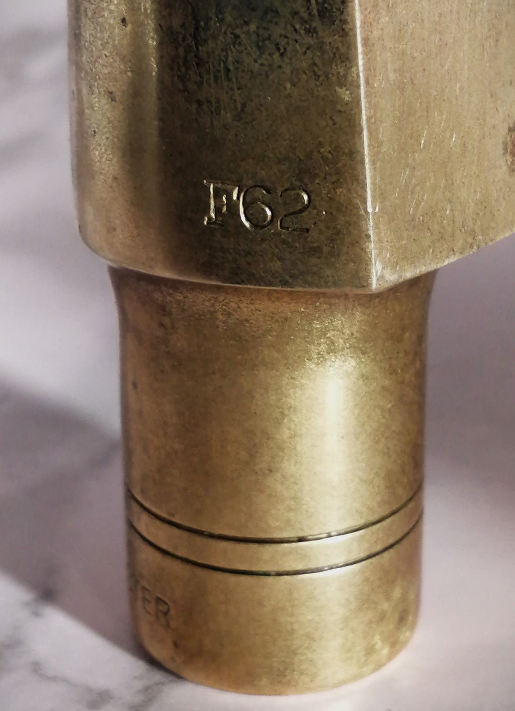 Here is an original condition 1950's, possibly 60's Otto Link "Double Ring" era baritone mouthpiece with serial. This piece is stamped 5* with F62 on the opposite side and measures .100" on my gauge.