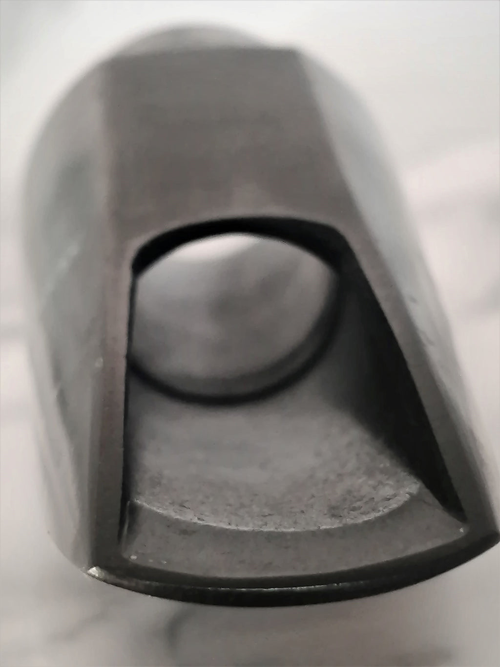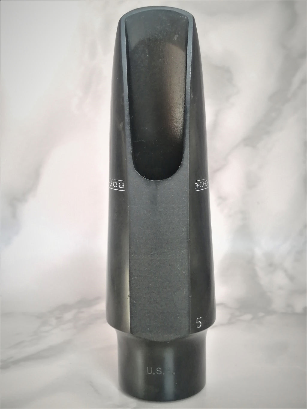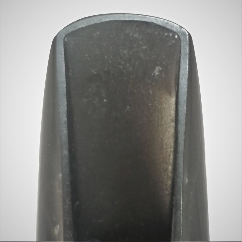 Over the years, the Tone Edge design has been changed many times. This era of production features a slim body, USA on the shank, a steep, long beak, a pronounced clamshell type baffle and horizontal pattern milling marks along the table and curve.